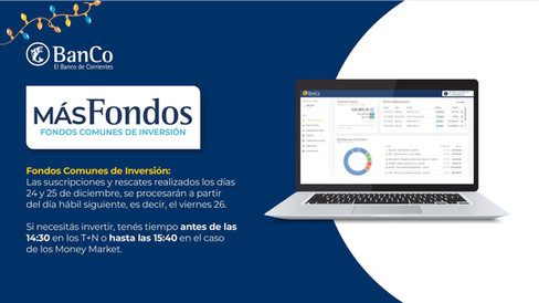 El Banco de Corrientes informa que los días miércoles 24, jueves 25, miércoles 31 de diciembre y jueves 1° de enero todas sus sucursales permanecerán cerradas debido a los asuetos y feriados nacionales.